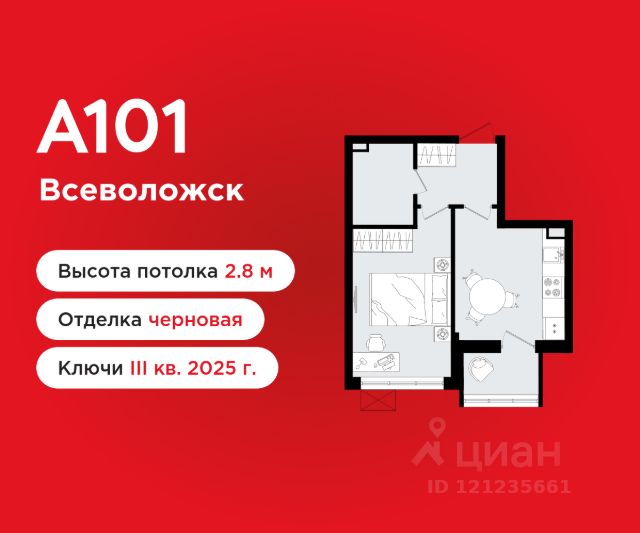 2-комнатная квартира площадью 57.20 в ЖК "А101 Всеволожск" на 2 этаже. Квартира без отделки. Вид из окна во двор. В квартире 1 санузел. Высота потолков 2.84 м. ОТДЕЛКА Квартира передается без отделки. Благодаря тому, что в данном типе отделки стены не возводятся, вы сможете создать удобную планировку и самостоятельно организовать зонирование комнат. ПАРАДНАЯ Мягкая мебель, живые растения и натуральные материалы в отделке формируют современный и уютный интерьер входной группы, радующий глаз и создающий приятную атмосферу для встреч с гостями. Для вашего удобства реализован безбарьерный вход, отвечающий требованиям доступной среды для всех жильцов, а также в каждой парадной имеется отдельное помещение для хранения колясок и велосипедов. ДВОРЫ И ОКРУЖЕНИЕ Большая часть территории комплекса отведена под зелёные благоустроенные зоны: теневые сады, уютные городские пространства с развитой тротуарной сетью и велодорожками - всё для вашего активного и здорового образа жизни. Внутренние дворы закрыты от посторонних и свободны от автомобилей. Каждый дом оснащён высокотехнологичными системами видеонаблюдения и контроля доступа, обеспечивая максимум безопасности и спокойствия для вас и ваших близких. Окружение района - живописный природный ландшафт. Всего в 5 минутах ходьбы располагается Ковалёвский лесопарк - источник кислорода, пространство для спорта, отдыха и приятных прогулок на свежем воздухе. ИНФРАСТРУКТУРА В жилой застройке сохранена естественная среда благодаря разнообразию растительности, извилистым дорожкам и уличной мебели из натуральных материалов. Здесь находится насыщенная сеть экотроп протяжённостью более 10 км прямо у дома, а просторная площадь позволяет жителям приятно провести время, общаться с соседями и отдыхать. Также предусмотрены зоны для отдыха и специально оборудованные спортивные площадки для активного образа жизни на свежем воздухе. Всё самое необходимое - рядом с вашим домом. Выпить утром кофе в уютном кафе или поужинать с друзьями, отвести детей на развивающие занятия или игровую площадку, купить продукты и товары первой необходимости. В проекте запланировано уникальное гастрономическое пространство, располагающееся на основном пешеходном бульваре жилого района. Территория дополнительно оборудована местами отдыха на свежем воздухе, а для ресторанов и кафе будет предусмотрена возможность организации летних веранд. ЗАСТРОЙЩИК ГК "А101" - один из крупнейших застройщиков России. Каждая восьмая квартира, проданная в Москве, находится в районе, построенном компанией, что подчеркивает её значимость и успех на рынке недвижимости. Квартира от застройщика в Всеволожске.
