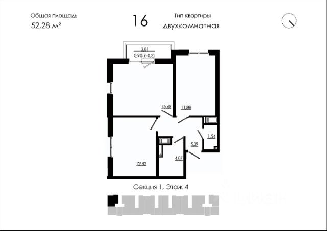 Продаётся 2-комнатная квартира в строящемся доме (Дом 19), срок сдачи: III-кв. 2026, общей площадью 52.28 кв.м., на 4 этаже. Новый жилой дом от застройщика "НК Развитие" расположен по адресу: Форносовское г.п, г.п.Форносово, ул.Круговая, уч. 19.