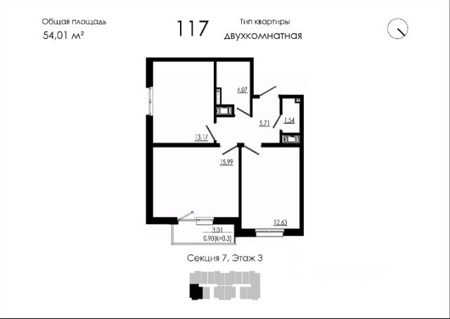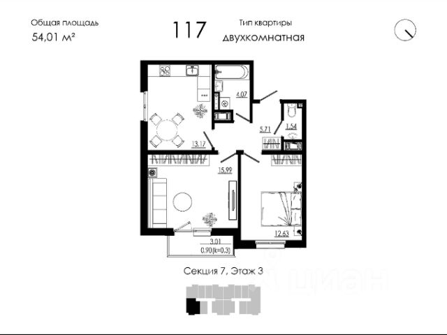 Продаётся 2-комнатная квартира в строящемся доме (Дом 19), срок сдачи: III-кв. 2026, общей площадью 54.01 кв.м., на 3 этаже. Новый жилой дом от застройщика "НК Развитие" расположен по адресу: Форносовское г.п, г.п.Форносово, ул.Круговая, уч. 19.