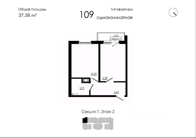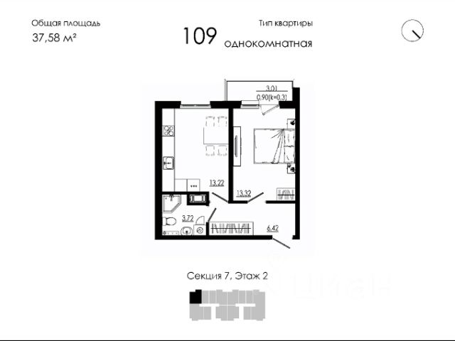 Продаётся 1-комнатная квартира в строящемся доме (Дом 19), срок сдачи: III-кв. 2026, общей площадью 37.58 кв.м., на 2 этаже. Новый жилой дом от застройщика "НК Развитие" расположен по адресу: Форносовское г.п, г.п.Форносово, ул.Круговая, уч. 19.