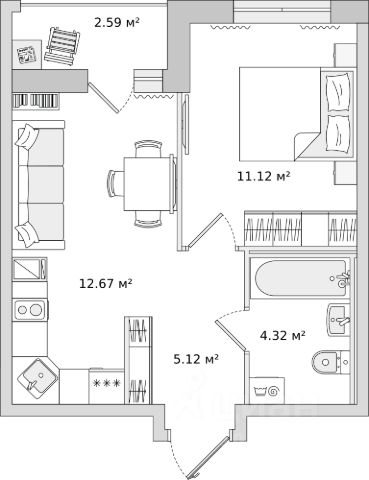 балкон 4,22 кв. м. (балкон не входит в общую площадь и стоимость, и идёт как подарок от застройщика).