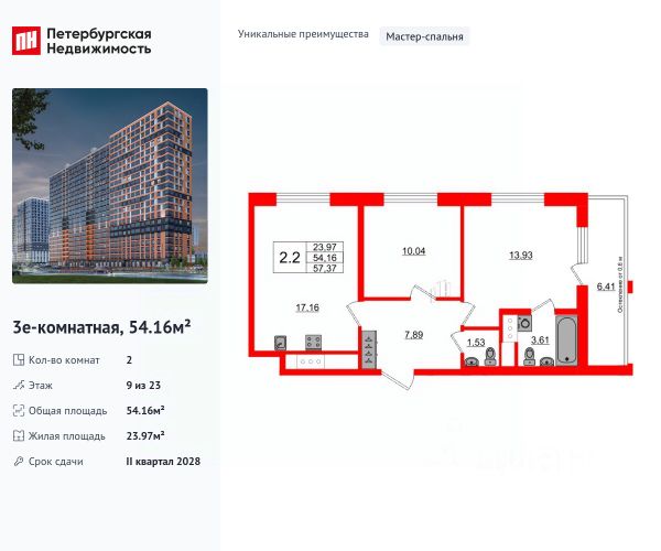 Квартира сдаётся в II квартале 2026 года.