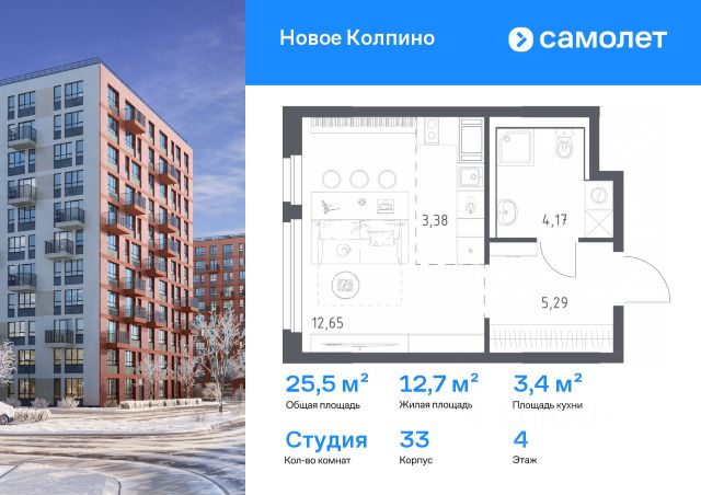 Строим кварталы для жизни с заботой о будущем. Предлагается 1-комнатная квартира комфорт-класса 32,89 кв.м в корпусе 33 на 4 этаже, в ЖК "Новое Колпино" Квартира с чистовой отделкой. Доступность дополнительных опций уточняйте у застройщика. Приобрести квартиру возможно по специальным акциям от застройщика, с текущими условиями акций можно ознакомиться в блоке "Акций". Цена динамическая и может отличаться, уточняйте актуальность у застройщика. Квартал "Новое Колпино" — современный квартал в тихом и зеленом районе Санкт-Петербурга. Здесь можно подолгу любоваться пышными кронами деревьев, подставляя лицо теплым лучам солнца. А еще в любой момент можно сесть в машину и уже через час оказаться в сердце Северной столицы. Будет легко планировать поездки: до центра Петербурга, или площади Восстания, — 25 минут на поезде. С территории квартала удобно выезжать на крупные магистрали: путь до Южного шоссе займет 15 минут на авто, а до Петрозаводского шоссе — всего 6 минут. В 20 минутах на авто находится метро "Рыбацкое", а в 7 минутах — ж/д станция Колпино. Проводите выходные на природе в Колпинском парке, который находится недалеко от квартала, на берегу реки Ижоры. Летом здесь можно вместе с детьми веселиться на аттракционах, кататься на лодке, играть в бадминтон или волейбол. А еще можно захватить орехов и покормить белок. Всего 7 минут на авто или автобусе — и вы в центре города Колпино. Взрослых впечатлит русская архитектура старинных церквей, а детям понравится забавный памятник героям мультфильма "Трое из Простоквашино". В "Новом Колпино" будут работать 4 детских сада, 3 из них уже готовы встречать малышей. Ребята постарше могут ходить на занятия в школу с собственным бассейном, в проекте уже работает новая современная школа с бассейном Корпуса высотой 11 этажей с французскими и панорамными балконами отделаны штукатуркой и облицовочным кирпичом. Вдохновение для палитры нам подарили оттенки рассветного неба: терракотовый, персиковый, песочный. Во дворе найдется интересное занятие для всех жителей квартала. Взрослые смогут устраивать тренировки на свежем воздухе в спортивных зонах, дети будут целый день веселиться на игровых площадках. А еще мы позаботились о вашей безопасности и закрыли дворы от машин. Возвращайтесь домой с чемоданом из путешествия или коляской из парка. На пути в подъезд вы не встретите ступенек. Оставить транспорт можно будет в специальном помещении на первом этаже. По желанию вы сможете получить ключи от квартиры с готовой отделкой. Мы положим ламинат, поклеим обои, установим мебель и сантехнику. Доступен вариант с готовой кухней — бежевые тона отделки станут фоном для интерьера мечты. Чтобы сразу отпраздновать новоселье, закажите у нас декор и мебельные сеты. А если хочется воплотить собственные идеи в интерьере, присмотритесь к опции — без отделки. Квартира с отделкой в районе Колпинский в Санкт-Петербурге.