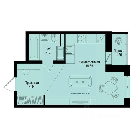 Общая площадь с застекленная лоджия 23,26 м2