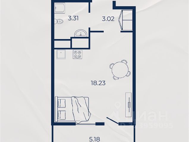 Студия включает две зоны: смежной зоны спальни и кухни-гостиной. По функции - полноценная однокомнатная квартира.