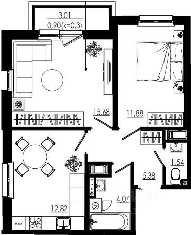 • ✅ Объект наибольшей площади: 54,1 м²