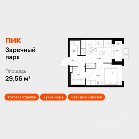 Продаётся квартира-студия площадью 24,07 кв.м на 3 этаже 16 этажного дома (Корпус 4, Секция 5) проекта ПИК Заречный парк. Светлый просторный подъезд на уровне земли, функциональная планировка, большие окна, c отделкой. Жилой квартал "Заречный парк" расположен в районе Новое Девяткино Ленинградской области. В 7 минутах на автомобиле - станция метро "Девяткино", до КАД - 10 минут на машине. В 2026 году будет достроена шестиполосная трасса в обход Мурино, примыкающая к Пискарёвскому проспекту. Она станет дополнительным выездом на КАД для жителей "Заречного парка". Проект включает восемь домов высотой от 15 до 24 этажей, три многоуровневых паркинга, детский сад и школу. В зелёных дворах-парках будут оборудованы современные детские и спортивные площадки, обустроены места для отдыха. На первых этажах разместятся магазины, кафе и другие сервисы. Планировки продуманы так, чтобы каждый квадратный метр жилой площади можно было эффективно использовать. Все квартиры сдаются с готовой отделкой. Артикул 1060464 (Застройщик ООО "СПЕЦИАЛИЗИРОВАННЫЙ ЗАСТРОЙЩИК ИНВЕСТАЛЬЯНС") [cn_sbp_1857821] Продам квартиру первичка в деревне Новое Девяткино Всеволожского района.