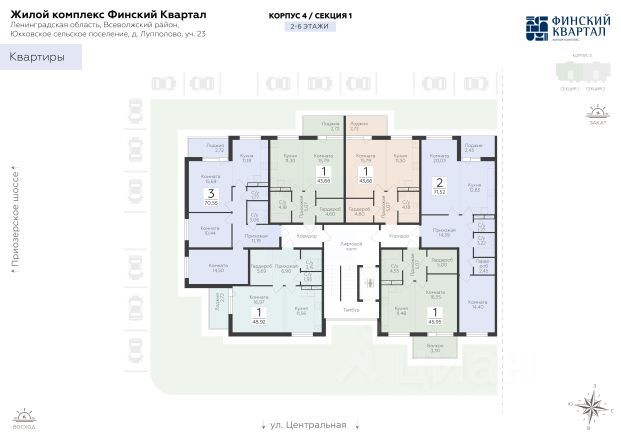 Продается 3-комнатная квартира 70,55 кв.м. на 3 этаже. В продаже квартира в жилом комплексе комфорт-класса "Финский квартал". Проект расположен во Всеволожском районе, в деревне Лупполово — всего в 9 км от КАД и 25 минутах до станций метро "Парнас", "Проспект Просвещения" и "Озерки". Локация сочетает тишину и природу с доступностью города: жилой комплекс окружён озерами, лесами и Лахтинским парком, при этом вся необходимая инфраструктура и транспорт — рядом. Это формат жизни на природе без отказа от привычного городского комфорта. В состав комплекса входят 6 домов средней этажности (69 этажей), объединённых приватным дворовым пространством с озеленением, прогулочной аллеей и зонами отдыха. Проект реализует федеральный застройщик ГК "Развитие". Транспортная доступность На автомобиле: • 25 мин до метро "Парнас" и "Проспект Просвещения" • 9 км до КАД • 30 мин до центра Санкт-Петербурга Архитектура Современная среднеэтажная застройка с увеличенными расстояниями между корпусами создаёт ощущение простора и уединённости. Фасады выполнены в лёгкой скандинавской стилистике, увеличенные окна и остеклённые лоджии наполняют квартиры светом и открывают виды на природу. Планировочные решения Более 60 вариантов планировок площадью от 22 до 79 м² — от студий до семейных квартир. Доступны форматы с кухнями-гостиными, мастер-спальнями, гардеробными и двумя санузлами. Отдельный формат — квартиры с террасами до 70 м² на верхних этажах. Все квартиры сдаются с предчистовой отделкой, что позволяет сократить сроки ремонта. Также доступны варианты чистовой отделки "под ключ". Благоустройство -закрытый двор без машин, -ландшафтное озеленение и прогулочная аллея, -детские и спортивные площадки для разных возрастов, -зоны отдыха и общения, -мягкая вечерняя подсветка, -безбарьерная среда, -парковка по периметру комплекса. Окружение -северные леса, экотропы, пляжи и зоны отдыха, -Лахтинский парк с прогулками, рыбалкой и активным отдыхом, -горнолыжные комплексы и загородные активности в доступности, -супермаркеты "Дикси", "Магнит", кафе — в шаговой доступности, -торговые центры, аптеки, больница, медцентр и фитнес — в Сертолово (1020 минут), -крупные ТЦ у КАД: "Мега Парнас", "Гранд Каньон", "Китай-город", -начальная школа, детский сад и Монтессори-центр — рядом, -до новой школы — организован школьный автобус. Продам квартиру первичка в сельском поселении Юкковское Всеволожского района.