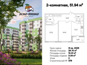 Студия площадью 22.50 в ЖК "А101 Всеволожск" c лоджией на 10 этаже. Квартира с отделкой. Вид из окна во двор. В квартире 1 санузел. Высота потолков 2.95 м.