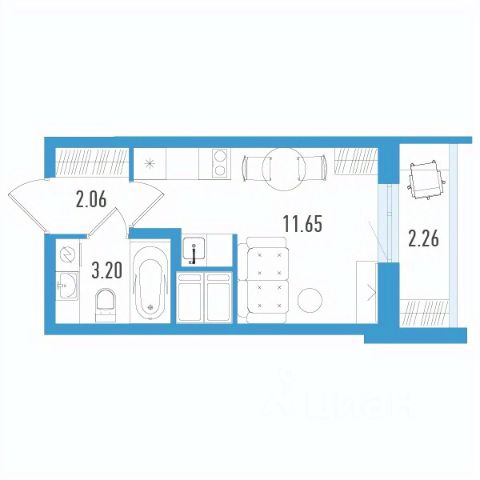 Квартира светлая, с увеличенными оконными проёмами (1,85 м) и отделкой white box. Окна выходят во двор или на Финский залив. Планировка удобная: два санузла, один из них — с окном и видом на залив.