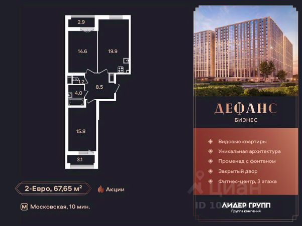 Ваша квартира — это идеально продуманное пространство: - ВИДОВАЯ СТОРОНА — из ваших окон открываются прекрасные виды на город. - ДВЕ ЛОДЖИИ, ОДНА ИЗ НИХ ИЗ КУХНИ ПЛОЩАДЬЮ 5,1 М² — дополнительное пространство для утреннего кофе или вечерних игр с детьми. - УДОБНАЯ НИША ПОД ШКАФ ПРИ ВХОДЕ — сразу решает вопрос с хранением вещей. - БОЛЬШАЯ КУХНЯ-ГОСТИНАЯ 20,3 М² — идеальное место для семейных обедов, приёмов гостей и создания уютной атмосферы. - ДВА ОКНА В КУХНЕ-ГОСТИНОЙ — многократно усиливают ощущение простора. - ПАНОРАМНЫЕ ОКНА В ПОЛ — дарят квартире максимальное количество света и открывают прекрасные виды. - ДВА САНУЗЛА — ключевое удобство для совместного проживания. - КВАРТИРА НА ДВЕ СТОРОНЫ — открываются виды на благоустроенный двор и на город. - ПОСЛЕДНИЙ ЭТАЖ (нет соседей сверху) — гарантирует вам максимальную тишину и уединение, которых так не хватает в городе А также в составе проекта есть собственный театр с новейшей акустической системой, кинооборудованием, теннисный корт и фитнес-центр площадью 2700 кв. м с двумя бассейнами и зоной СПА. Всё это — в шаговой доступности. ЖК "Дефанс Бизнес" — это воплощение современного комфорта и высоких стандартов петербургской архитектуры. Элегантный дом в виде замкнутого каре с архитектурной подсветкой карниза расположился в комфортном удалении от оживлённой ул. Типанова, всего в 10 минутах ходьбы от Московской площади и станции метро "Московская". Приватная территория ЖК закрыта от посторонних и машин, здесь разместился уютный двор с зонами для игр, отдыха и арт-объектом "Солнечный парус". Променад, пять фонтанов с подсветкой и таинственный сад делают этот проект местом, где хочется жить любому успешному петербуржцу! ЖК "Дефанс Бизнес" предлагает просторные кухни-гостиные, новейшие инженерные системы, дизайнерские холлы и консьерж-сервис. Дом сдан. Успейте купить по выгодной цене! Продам квартиру первичка на улице Типанова в Санкт-Петербурге.