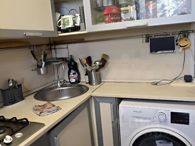 Встроенный кухонный гарнитур остаётся для новых владельцев квартиры.