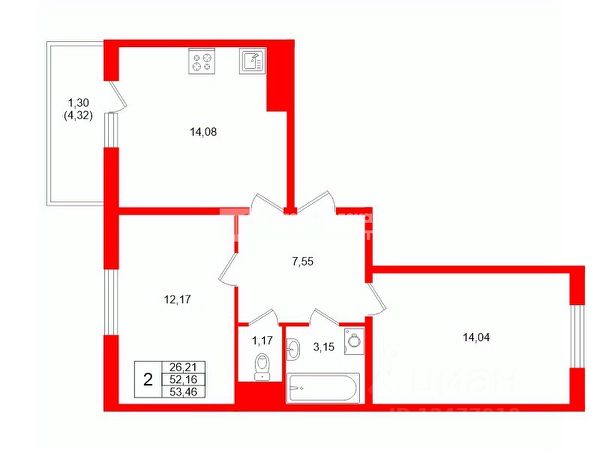 Продается видовая 2-х комнатная квартира 68, 1 кв. м.