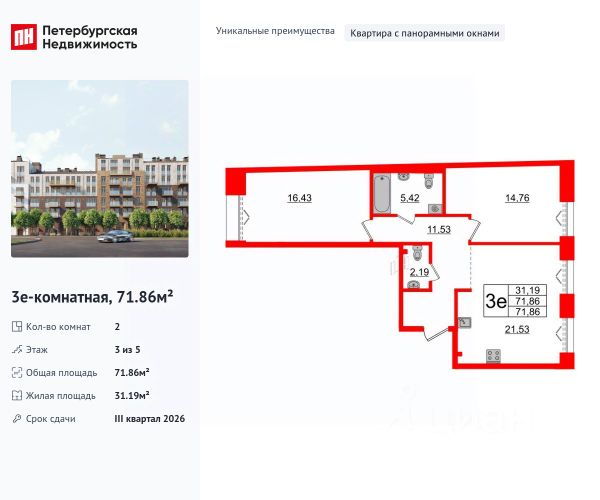Продается уютная, семейная 3-комнатная квартира от застройщика в жилом комплексе "Империал Клаб" в уютном Василеостровском районе. До метро можно добраться на транспорте всего за 7 минут. Окна от пола до потолка позволят безгранично любоваться видами Петербурга, наполнят комнату солнцем и светом! Уникальная, функциональная европланировка, большая кухня-гостиная 16.56 м², вместительная прихожая 8.06 м². Общая площадь квартиры - 86.64 м², жилая 45.62 м². Квартира продается c черновой отделкой. Что особенного в ЖК "Империал Клаб"? • Парадные виды на Большую Неву и Английскую набережную • Изысканная архитектура жилого комплекса. • Уникальное благоустройство. • Двухуровневые входные группы. • Панорамные окна, открытые террасы, вантовые балконы. • Двухэтажные сити-виллы с патио, квартиры с возможностью обустройства камина и зимнего сада с растениями. • Просторный фитнес-центр с бассейном и спа-зоной на первом этаже . • Премиальный сервис: заказ такси,выгул собак, уборка, доставка вещей .
