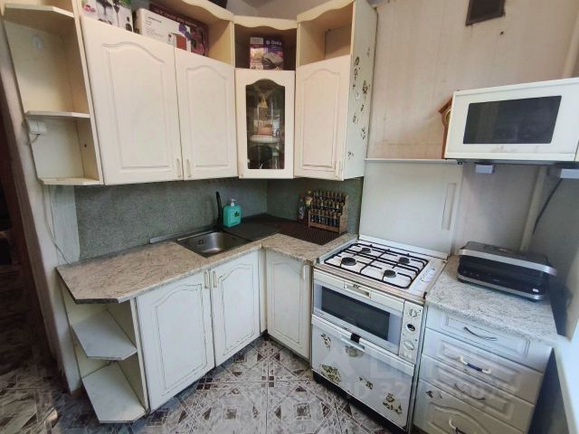 Общая площадь 42 кв.м, комнаты изолированные 19 кв.м и 9 кв.м, из большой комнаты имеется выход на балкон. Кухня 5 кв.м, санузел совмещенный, с ванной, там же установлена стиральная машина. Горячая вода - газовая колонка, также имеется газовая плита на кухне.