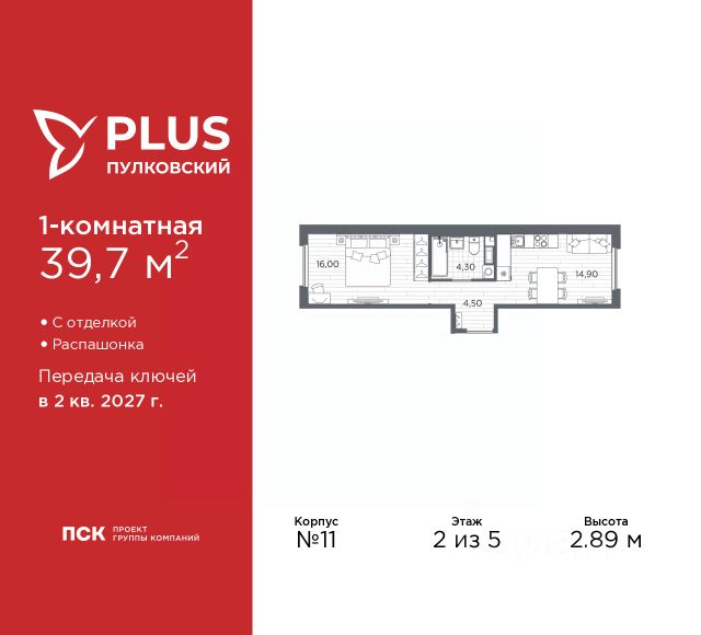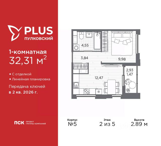 1-комн. квартира с отделкой в ЖК "PLUS Пулковский" на 4 этаже. Общая площадь: 37.95 кв.м., жилая: 10.2 кв.м., площадь просторной кухни-столовой: 17.6 кв.м. Все окна выходят на одну сторону. В квартире одна лоджия, один совмещенный санузел. Высота потолков 2.89 м. Дом монолитный, трехподъездный, высотой 5 этажей. Квартира находится во 2-й секции в корпусе 14. На этаже 6 квартир. В подъезде 1 грузовой лифт. Начало строительства - 1 квартал 2026 года. Окончание строительства - 2 квартал 2027 года. Оформление сделки по договору долевого участия. Уютный пятиэтажный city квартал PLUS Пулковский расположен в престижном Московском районе на пересечении Пулковского и Волхонского шоссе в новом формирующемся микрорайоне. Рядом проходит одна из важнейших транспортных артерий города Пулковское шоссе, а в 10 минутах езды два въезда на КАД и въезд на ЗСД. Благодаря удобному и быстрому выезду на Пулковское шоссе, можно легко добраться до центра города за 35 мин. До станций метро "Московская" и "Купчино" - 15 мин. на машине, а до аэропорта Пулково - 17 мин. В составе квартала: 30 пятиэтажных домов, школа со спортивным стадионом, 2 детских сада с бассейнами, наземные и подземные паркинги, центральный зеленый бульвар с play hub и местами отдыха. Благоустройство квартала продумано до мельчайших деталей, в его основе - забота о качестве жизни каждого жителя. Дома возводятся по современной монолитной технологии строительства с вентилируемыми фасадами. Благодаря большим увеличенным окнам и отсутствию высокоэтажных домов, во всех квартирах максимальный объем естественного света. В составе квартала запланированы социально-значимые объекты: школа на 825 мест со спортивным стадионом и бассейнами, два детских сада с бассейнами на 220 мест каждый. Территория квартала зонирована таким образом, чтобы автомобильные и пешеходные потоки и не пересекались. Прогулочные и велосипедные дорожки отделены от автомобильных проездов зелеными насаждениями. Дворы закрыты для машин, что дает чувство дополнительной безопасности для жителей особенно, для самых маленьких. Вся территория квартала безбарьерная. Здесь нет пандусов, резких перепадов высот или неудобных ступеней. Вход в парадные с уровня земли. В каждом дворе есть своя оборудованная детская площадка. А в центре микрорайона расположится большая игровая площадка play hub с пространством для командных игр. PLUS Пулковский располагается в молодом микрорайоне, который сейчас находится в стадии активного развития. Он будет обладать собственной развитой инфраструктурой. В радиусе 15 минут езды на автомобиле располагаются многочисленные магазины, супермаркеты, спортивные, образовательные и медицинские учреждения, парки и достопримечательности. Для автомашин предусмотрены отдельно стоящий 5-ти этажный паркинг на 958 машино-мест, две подземные парковки на 367 машино-мест и наземные парковочные зоны по внешнему периметру микрорайона. #z6f3om