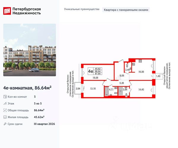 Продается уютная, семейная 3-комнатная квартира от застройщика в жилом комплексе "Империал Клаб" в уютном Василеостровском районе. До метро можно добраться на транспорте всего за 7 минут. Окна от пола до потолка позволят безгранично любоваться видами Петербурга, наполнят комнату солнцем и светом! Уникальная, функциональная европланировка, большая кухня-гостиная 16.56 м², вместительная прихожая 8.06 м². Общая площадь квартиры - 86.64 м², жилая 45.62 м². Квартира продается c черновой отделкой. Что особенного в ЖК "Империал Клаб"? • Парадные виды на Большую Неву и Английскую набережную • Изысканная архитектура жилого комплекса. • Уникальное благоустройство. • Двухуровневые входные группы. • Панорамные окна, открытые террасы, вантовые балконы. • Двухэтажные сити-виллы с патио, квартиры с возможностью обустройства камина и зимнего сада с растениями. • Просторный фитнес-центр с бассейном и спа-зоной на первом этаже . • Премиальный сервис: заказ такси,выгул собак, уборка, доставка вещей .