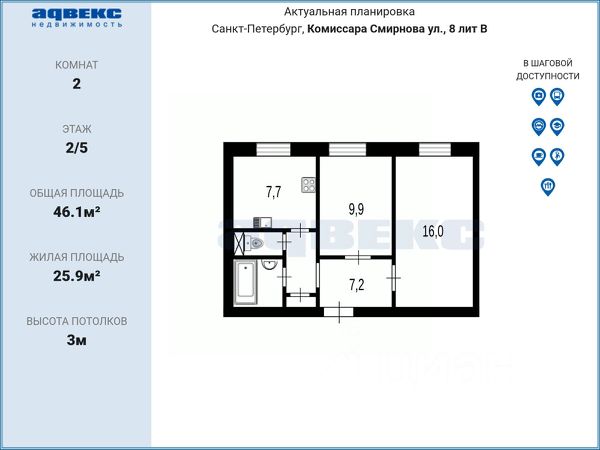 Свежий ремонт, мебель обновлена в апреле 2025 года.