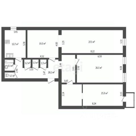 Просторная квартира общей площадью 83 м2 и с высотой потолков после ремонта 3 метра: