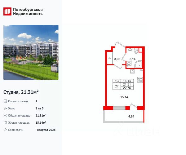 Продается уютная 1-комнатная квартира от застройщика в жилом комплексе "Парадный ансамбль" в престижном Московском районе. До метро можно добраться на транспорте всего за 20 минут. Удобная, классическая планировка, кухня 10.18 м², вместительная прихожая 3.63 м². Общая площадь квартиры - 31.11 м², жилая 14.05 м², высота потолка 2.77 м. Квартира продается с отделкой "NORD LINE WHITE". Что особенного в ЖК "Парадный ансамбль"? • Инновационный Лицей Setl с оригинальной архитектурной концепцией и уникальной образовательной средой • Масштабное малоэтажное строительство в престижном Московском районе • Рекреационные зоны: парадный парк в центре квартала, ручей с собственной набережной, центральная площадь, ресторанный комплекс и пешеходный бульвар • Фасады из керамогранита и кирпича с яркими и акцентными входными группами • Две самые большие площадки Setl Kids и Setl Sport • Уникальные квартиры.High Flat на последних этажах, палисадники у квартир на первом этаже, семейные секции, квартиры с саунами и окном в ванной