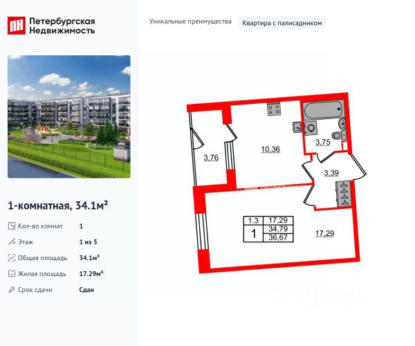 Двухкомнатная квартира с отделкой в ЖК "PLUS Пулковский" на 5 этаже. Общая площадь: 46.78 кв.м., жилая: 24.95 кв.м., площадь просторной кухни-столовой: 10.43 кв.м. Угловая квартира, очень светлая, естественная вентиляция при открытии окон. В квартире один балкон, один совмещенный санузел. Высота потолков 2.75 м. Дом монолитный, многоподъездный, высотой 5 этажей. Квартира находится в 6-й секции в корпусе 2. На этаже 7 квартир. В подъезде 1 грузовой лифт. Начало строительства - 4 квартал 2023 года. Окончание строительства - 4 квартал 2025 года. Оформление сделки по договору долевого участия. ЖК "PLUS Пулковский" расположен в престижном Московском районе на пересечении Пулковского и Волхонского шоссе, по которым можно быстро добраться до КАД и до станций метро Московская и Звёздная. Поблизости расположены дворцово-парковые ансамбли Пушкина, Павловска, Петергофа, Гатчины, Ломоносова, а также вся торговая и развлекательная инфраструктура: ТК Лето, Outlet Village Pulkovo, Пулково-3, гипермаркеты Лента, Окей, Metro. На территории комплекса будут построены средняя образовательная школа на 825 мест с двумя бассейнами, 2 детских сада на 220 мест каждый. В детских садах тоже будут бассейны. Кроме этого будет построен медицинский центр для взрослых и детей. Во дворах буду оборудованы спортивные и безопасные детские площадки, на первых этажах домов будут расположены коммерческие помещения. Для автолюбителей будут подземные и наземный паркинги. Для жителей домов будет доступно "приложение жителя", которое предоставит такие возможности: — дистанционное открытие дверей в парадную и на территорию комплекса, — просмотр изображений с видеокамер, — контроль за показаниями счетчиков, — коммуникация с УК. Показания всех счетчиков будут собираться дистанционно. В квартирах будет выполнена коллекторная разводка отопления в стяжке пола от коллекторов в межквартирных коридорах. Застройщик ЖК "PLUS Пулковский" - группа компаний ПСК, которая является одной из ведущих девелоперских компаний Санкт Петербурга. Более 16 лет она возводит в Северной столице качественное жилье премиум, бизнес и комфорт-класса, социальные объекты школы и детские сады, апарт-комплексы и торговые центры и является четырехкратным обладателем золотого знака "Надежный застройщик России". #Z6b7V8