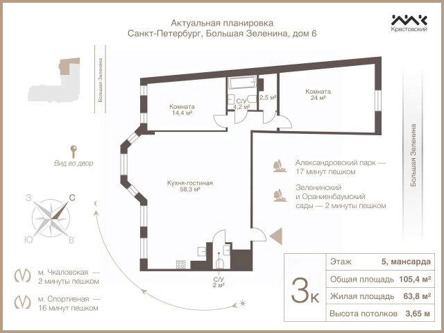10 минут на авто до Крестовского острова и ЦПКиО, Петропавловской крепости, Ботанического сада, Севкабель Порта, Новой Голландии.