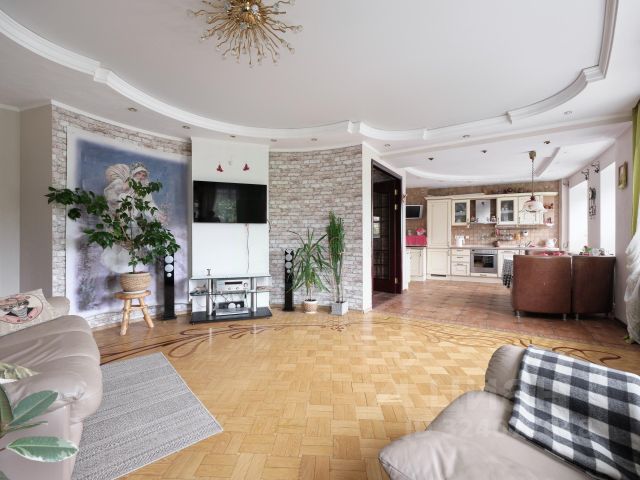 ВМЕСТИТЕЛЬНАЯ кухня-гостиная площадью 20,7м² правильной прямоугольной формы. На полу выложена инженерная доска и КЕРАМОГРАНИТ. В кухне ДИЗАЙНЕРСКИЙ кухонный гарнитур со встроенной бытовой техникой выполненный на заказ. Имеются электрические ТЕПЛЫЕ ПОЛЫ.