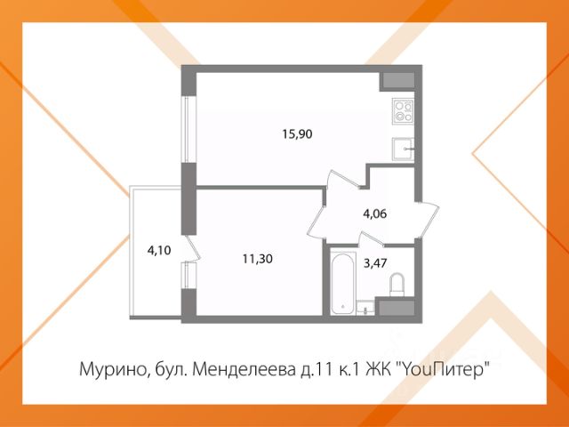 Светлая и просторная 2Е кв. (евродвушка) с витражным остеклением балкона в ЖК "YouПитер". Ленинградская область, Всеволожский район, Мурино, бул. Менделеева, 11к1