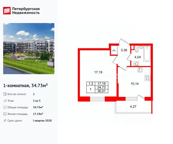 Продается просторная 1-комнатная квартира от застройщика в жилом комплексе "Парадный ансамбль" в престижном Московском районе. До метро можно добраться на транспорте всего за 20 минут. Удобная, классическая планировка, кухня 10.14 м², вместительная прихожая 3.36 м². Общая площадь квартиры - 34.73 м², жилая 17.19 м², высота потолка 2.77 м. Квартира продается с отделкой "Норд Лайн серый". Что особенного в ЖК "Парадный ансамбль"? • Уникальные квартиры. Хай Флет (High Flat) на последних этажах, палисадники у квартир на первом этаже, семейные секции, квартиры с саунами и окном в ванной • Масштабное малоэтажное строительство в престижном Московском районе • Рекреационные зоны: парадный парк в центре квартала, ручей с собственной набережной, центральная площадь, ресторанный комплекс и пешеходный бульвар • Фасады из керамогранита и кирпича с яркими и акцентными входными группами • Две самые большие площадки Setl Kids и Setl Sport • Инновационный Лицей Setl с оригинальной архитектурной концепцией и уникальной образовательной средой