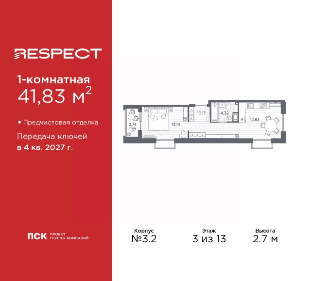 Продается 1-комн. квартира с предчистовой отделкой в ЖК "RESPECT" на 13 этаже. Общая площадь: 38.09 кв.м., жилая: 11.58 кв.м., площадь просторной кухни-столовой: 16.47 кв.м. Все окна выходят на одну сторону. В квартире один балкон, один совмещенный санузел. Высота потолков 2.7 м. Квартира будет сдана с отделкой WHITE BOX, в которую включены следующие виды работ: - заливка стяжки; - установлена система отопления квартиры; - подготовлены потолки; - все стены выровнены, загрунтованы и отштукатурены; - электрическая проводка разведена по комнатам. Квартира будет готова к чистовой отделке. Дом монолитный, многоподъездный, переменной этажности, от 8 до 13 этажей. Квартира находится в 1-й секции высотой 13 этажей в корпусе 2. На этаже 5 квартир. В подъезде 1 пассажирский и 1 грузовой лифт. Окончание строительства - 1 квартал 2026 года. Оформление сделки по договору долевого участия. В шаговой доступности от жилого комплекса расположены станции метро (расстояние по прямой): "Лесная" (800 м), "Площадь Мужества" (1.4 км), "Выборгская" (1.9 км), также недалеко от этого корпуса находятся станции метро: "Академическая", "Политехническая". Жилой квартал "RESPECT" строится на Полюстровском пр, 87, в одной из самых востребованных локаций Петербурга. В 10 минутах пешком - метро "Лесная" и в 10 минутах на транспорте - Петроградская сторона. Высота домов от 7 до 13 этажей. Квартиры сдаются с отделкой white box и с чистовой отделкой. На территории Respect строится школа на 1125 учащихся и детский сад на 240 мест. Запроектированы собственная газовая котельная, закрытая территория, дворы без машин и подземные паркинги с лифтами. В проекте предусмотрены трапециевидные балконы или остекленные лоджии, которые, с одной стороны, исключают монотонность фасада, являясь декоративными элементами, с другой дополнительным функциональным пространством в квартирах. Цветовая гармония фасадов каждого дома раскрывает характер квартала. Коричневый цвет клинкерного кирпича со структурой водяных штрихов — цвет уюта и безопасности, сдержанности и надёжности. Вентилируемые фасады облицованы клинкерным кирпичом. Его высокая прочность позволяет давать 100 лет гарантии на этот материал. Водопоглощение клинкерного кирпича составляет менее 5%, за счет чего у него высокая теплопроводность и прочность. В квартале запроектированы внутренние закрытые территории дворов домов без доступа автомобилей и безбарьерная среда для велосипедистов и колясок. Предусмотрены IP-домофония с функцией дистанционного открывания калиток и парадных, а также дистанционный сбор показаний счетчиков и мобильное приложение для жителей. Для безопасности жителей квартала - круглосуточное видеонаблюдение и служба охраны. В каждой квартире предусмотрены внешние корзины для кондиционеров. Вся территория квартала будет связана единой концепцией благоустройства, разработанной ландшафтным бюро L.BURO. На эксплуатируемой кровле на уровне первого этажа в домах 1 и 4 будут обустроены общественные видовые терра