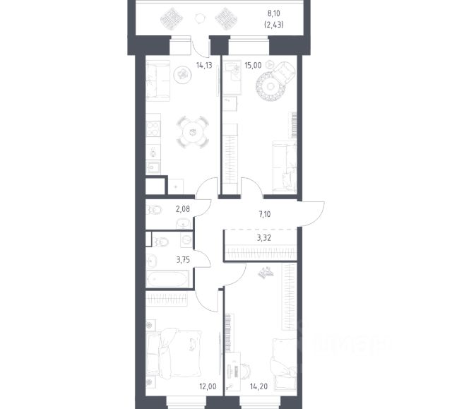 Предлагается к продаже евротрешка в современном ЖК "Невские паруса" с видом на Неву. Общая площадь квартиры - 55.3 кв.м. + балкон 4.3 кв.м. Кухня-гостиная- 17.2 кв.м. Спальня 1 - 10 кв.м. Спальня 2 - 14.1 кв.м. Квартира светлая, по два окна на кухне и в одной из спален. В квартире остаётся вся мебель. Благоустроенный закрытый двор, детские и спортивные площадки, обустроенная набережная. Во дворе школа и детский сад. Один совершеннолетний собственник, прямая продажа, полная стоимость в договоре. При необходимости поможем с оформлением ипотеки по максимально выгодной в данный момент ставке. Ждём Ваших звонков, уважаемые покупатели!