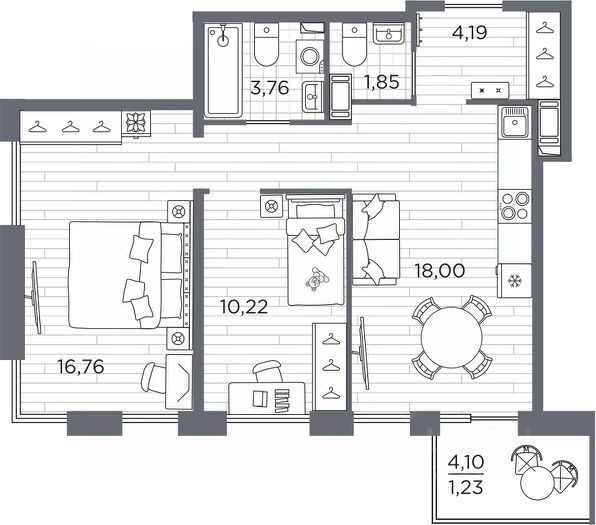 Двухкомнатная квартира от застройщика с отделкой в ЖК "Сезоны" на 5 этаже. Общая площадь: 58.97 кв.м., жилая: 26.98 кв.м., площадь просторной кухни-столовой: 18 кв.м. Угловая квартира, очень светлая, естественная вентиляция при открытии окон. В квартире один балкон, один совмещенный и один раздельный санузел. Высота потолков 2.88 м. Дом монолитный, многоподъездный, высотой 7 этажей. Квартира находится в 1-й секции в корпусе 631. На этаже 5 квартир. В подъезде 1 грузовой лифт. Начало строительства - 4 квартал 2025 года. Окончание строительства - 2 квартал 2028 года. Оформление сделки по договору долевого участия. Видовой жилой комплекс "Сезоны" от ГК ПСК возводится в одном из самых востребованных и престижных районов Санкт-Петербурга - Приморском, рядом с Суздальским и Выборгским шоссе. Такое расположение обеспечивает удобный выезд в разные части города, сочетая городской комфорт с близостью к природе. Всего в 50 метрах находится природный заказник "Новоорловский" и речка Каменка, а в пешей доступности - Суздальские озёра. Приморский район отличается развитой социальной и транспортной инфраструктурой. Здесь расположены крупные торговые и деловые центры, современные спортивные объекты, медицинские учреждения, магазины, кафе и рестораны. Комплекс включает четыре корпуса, ввод которых в эксплуатацию запланирован на 2028 год. Проект и прилегающий микрорайон разработаны в соответствии с концепцией "15-минутного города", при которой вся необходимая инфраструктура находится в шаговой доступности. В ближайшем окружении - две школы, пять детских садов, магазины, кафе, салоны красоты, банковские отделения и пункты выдачи заказов. Также предусмотрены два четырёхъярусных паркинга с лифтами на 288 машиномест. О застройщике ГК ПСК - один из крупнейших девелоперов Санкт-Петербурга с более чем 18-летней историей. Компания реализует проекты во всех сегментах недвижимости - от премиальных жилых комплексов до масштабных кварталов комфорт-класса и апарт-отелей. По данным портала ЕРЗ.РФ, ПСК входит в ТОП-3 крупнейших застройщиков Санкт-Петербурга по объёму текущего строительства. Портфель компании превышает 3 млн кв. м жилой и коммерческой недвижимости. Все объекты сдаются строго в срок и отличаются высоким уровнем архитектурных и инженерных решений. #2TOiCD Квартира с балконом в районе Приморский в Санкт-Петербурге.
