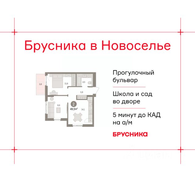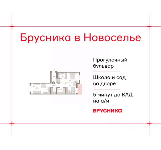 Двухкомнатная квартира с предчистовой отделкой в ЖК "Брусника в Новоселье" на 2 этаже. Общая площадь: 64.13 кв.м., жилая: 26.1 кв.м., площадь просторной кухни-столовой: 18.8 кв.м. Комнаты изолированные, все окна выходят на одну сторону. В квартире один совмещенный санузел. Высота потолков 2.7 м. Дом монолитный, многоподъездный, высотой 9 этажей. Квартира находится в 3-й секции в корпусе 1. На этаже 7 квартир. В подъезде 1 пассажирский и 1 грузовой лифт. Начало строительства - 1 квартал 2026 года. Окончание строительства - 2 квартал 2027 года. Оформление сделки по договору долевого участия. Новоселье — это городской поселок в Ломоносовском районе Ленинградской области. Он расположен в 5 км к югу от Финского залива, на самой границе региона. Вдоль поселка проходит Кольцевая автомобильная дорога, а сразу за ней начинается Санкт-Петербург — Красносельский район и Стрельна. Район зелёный и тихий, с разных сторон его окружают Шунгеровский заказник, Гореловский лес и дачные поселки. Есть вся необходимая инфраструктура: уже построенные детские сады, школы, клиники, торговые центры, ледовая арена. Так Новоселье сочетает в себе все преимущества городского комфорта и размеренной жизни рядом с природой. До выезда на КАД 5 минут, до ст. м. Ленинский проспект - 25 минут на а/м, до аэропорта Пулково - 30 минут на а/м. Брусника построит в Новоселье семь домов, в том числе башни и дома с разноуровневыми секциями. Высота зданий — от 8 до 12 этажей. Проект разделен на три очереди, на первом этапе мы возведём три дома в западной части квартала. В основе архитектурной концепции "Брусники в Новоселье" лежит лаконичность силуэтов и внимание к деталям. Мы разработали три фасадные темы, в основе которых лежит один прием — вертикальные и горизонтальные членения, реализованные за счет остекления балконов и лоджий, переменной этажности и цветового дробления фасадов. Выразительность последних достигается за счёт симметрии и использования декоративных элементов — карнизов и рамок вокруг окон. Входные группы мы заглубим относительно основной линии фасада, чтобы подчеркнуть входы в ритейл и места общего пользования. Материалы отделки будут приближены к натуральным. Первые этажи домов мы облицуем плиткой, имитирующей клинкерный кирпич. Кроме того, в проекте много террас, и все они разные: на первых этажах, на последних, угловые, с прямым фронтоном. Они расширяют пространство квартир и связывают их с природным контекстом. #26EWdM