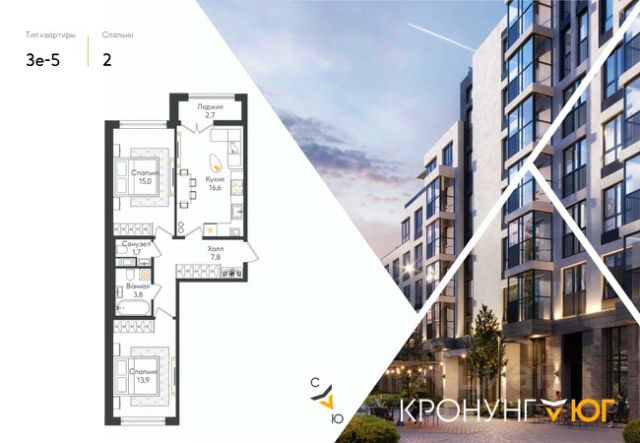 Функциональная планировка!. Кронунг ЮГ- современный жилой комплекс комфорт-класса на берегу реки Дудергофки. Невысокая этажность, современная архитектура. Благоустроенный внутренний двор будет включать в себя спортивные площадки, в том числе памп-трек, места для отдыха, прогулочную набережную, детские игровые площадки, места для выгула собак, шезлонги вдоль берега реки Дудергофки. Для автомобилей предусмотрен трехэтажный отдельно стоящий паркинг и парковочные места с зарядными станциями для электромобилей на территории ЖК. Локация: • 1 минута до автобусной остановки • 20 минут до метро • 5 минут до КАД