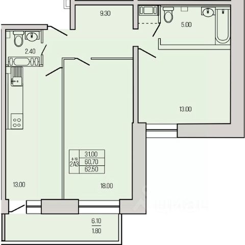 - Удобное зонирование пространства — выделены зоны.