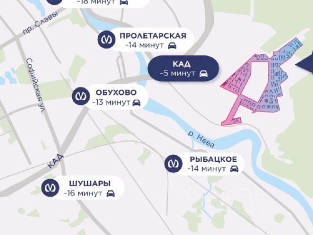 Удобные транспортные развязки, выезды на Октябрьскую набережную, Мурманское шоссе и КАД, до аэропорта Пулково 20 - 25 минут, до пл. Александра Невского 30 минут.