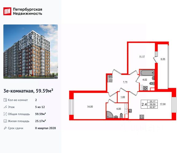 Продается уютная 2-комнатная квартира от застройщика в жилом комплексе "Астра Континенталь" в активно развивающимся Невском районе. До метро можно добраться пешком всего за 5 минут. Удобная, классическая, функциональная европланировка, большая кухня-гостиная 16.04 м², вместительная прихожая 6.9 м². Общая площадь квартиры - 50.76 м², жилая 22.64 м², высота потолка 2.77 м. Квартира продается с отделкой "Норд Лайн серый плюс". Что особенного в ЖК "Астра Континенталь"? • Уникальная локация 400 метров до метро, 300 метров до благоустроенной набережной • Самодостаточный квартал со всей инфраструктурой в 3-х км от центра • Впечатляющий объем благоустройства: 30 000 кв. метров рекреационных зон с променадом и гейзерными фонтанами • Масштабный парк "Город Спорта"