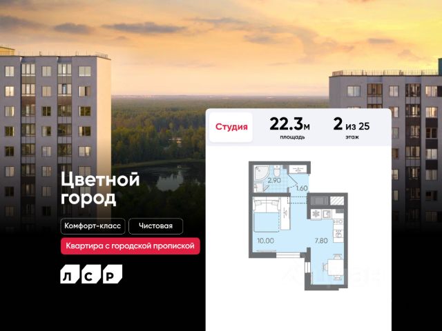Продается 1-комнатная квартира в ЖК "Цветной город" на 4 этаже. Общая площадь составляет 28.60 кв. м. Квартира с чистовой отделкой Срок сдачи дома: 3 квартал 2026. Жилой комплекс "Цветной город" располагается по адресу Санкт-Петербург, Красногвардейский. "Цветной город" - современный масштабный эко-проект: жилые кварталы со своей сетью улиц, пешеходными бульварами и велодорожками, площадками для спорта и отдыха. Кварталы располагаются вдоль береговой линии реки Охты. "Цветной город" - это жизнь вблизи природы, но с городской пропиской. К 2026 году на берегах реки Охты будет создан Пейзажный парк с летними экотропами и зимними горками для тюбингов, скейт-парком и летним кинотеатром. В ЖК "Цветной город" запланировано и уже частично реализовано строительство 10 школ, 16 детских садов, 4 поликлиники, больница, ТРК, спортивно-оздоровительные сервисы С центром Петербурга жителей "Цветного города" свяжет Пискарёвский проспект, удобный выезд на КАД позволяет без труда добираться до других районов. Расположение: • 10 минут на авто до КАД; • 15 минут на авто до станций "Гражданский проспект" и "Академическая"; • 20 минут до ж/д станции "Ручьи".; Квартира сдается с готовой отделкой из современных экологичных материалов: на стенах плотные белые обои под покраску, на полу износостойкий матовый ламинат, в санузлах керамическая плитка на стенах и керамогранит на полу. Трубы отопления скрыты в стяжке пола и не мешают мебели. В квартире предусмотрено большое количество двойных розеток и выключателей. В ЖК "Цветной город" предусмотрена система "Умный дом": смартфон с приложением является ключом от всех дверей в ЖК, гостевой доступ оформляется в приложении, видеозвонки от домофона поступают в приложение, показания счетчиков автоматически передаются в учетные базы ЖКХ. Преимущества: • Рядом лесопарк и река Охта • Живописные виды из окон • Безбарьерная среда • Развитая социальная инфраструктура • Система "Умный дом" Успейте приобрести квартиру на выгодных условиях! Чтобы узнать подробности, обращайтесь за консультацией по телефону.