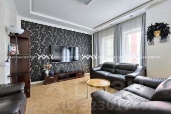 Кухня премиум-класса, совмещена с гостиной. Оборудована встроенной техникой: варочная панель, духовой шкаф, ПММ от Miele, холодильник Smeg. Окна выходят во внутренний двор, есть выход на закрытый балкон с теплым полом. Гостиная обустроена дорогой итальянской мебелью, которая специально подбиралась в Италии. Телевизор Sony с диагональю 75".