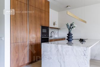 Кухня-гостиная со столовой зоной. Современная кухонная мебель, со встроенным холодильником, посудомоечной машиной, индукционной варочной панелью, и духовым шкафом. (техника проверенных марок Воsсh, Gоrеnjе, АЕG.) Остров с барными стульями. Столешница компакт-плита (hpl столешница). В столовой зоне стол из шпона дуба на 4 персоны с мягкими стульями из массива бука. В зоне гостиной диван-кровать, ТВ 55 дюймов, оформленная ТВ зона с хранением.