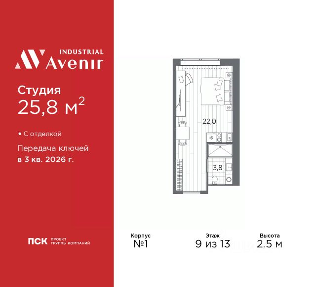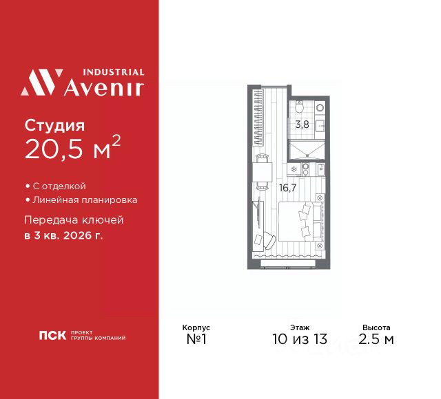 1-комн. апартаменты-студия с отделкой в ЖК "Industrial AVENIR" на 6 этаже. Общая площадь: 24.5 кв.м., площадь гостиной 20.7 кв.м., из которых 5 кв.м. выделено под кухонную зону. Все окна выходят на одну сторону. В апартаментах один совмещенный санузел. Высота потолков 2.5 м. Апартаменты находятся в корпусе 1. Дом монолитный, одноподъездный, высотой 13 этажей. На этаже 64 квартиры. В подъезде 3 пассажирских и 3 грузовых лифта. Окончание строительства - 3 квартал 2026 года. Оформление сделки по договору долевого участия. В шаговой доступности от дома расположены станции метро (расстояние по прямой): "Кировский завод" (300 м), "Путиловская" (300 м), "Автово" (1.6 км), также недалеко от этого корпуса расположены станции метро: "Нарвская", "Ленинский Проспект", "Балтийская". 13ти этажное здание апарт-отеля строится по монолитной технологии. В номерном фонде 739 апартаментов, в том числе юниты с террасами и в формате "евро 2", офисные и коммерческие помещения, оборудованный коворкинг, подземный паркинг. На первом этаже лобби 160 кв.м. с рецепшн, выставочным пространством, кафе и гостевой зоной. Окончание строительства апарт - отеля - III квартал 2026 года. Оформление сделки по договору долевого участия. Семейная ипотека на апартаменты не распространяется. ОТДЕЛКА Все апартаменты сдаются с полной чистовой отделкой, выполненной в концептуальном индустриальном стиле. Стены оформлены обоями под покраску в сером оттенке. Одна из стен акцентная - с декоративной штукатуркой, имитирующей бетон. Элементы черного металла представлены в трековых светильниках, дверной фурнитуре и сантехнике. На полу уложен износоустойчивый ламинат с деревянной фактурой. Еще одним элементом индустриального стиля в отделке апартамента является крупноформатный керамогранит на полу и стенах санузла, имитирующий фактуру и цвет кортеновской стали. ЗD по шоу руму. РАСПОЛОЖЕНИЕ Апарт-отель Industrial Avenir строится в 300-х метрах от метро "Кировский завод" и "Путиловская" (открытие 2025 г) на центральной магистрали Кировского района проспекте Стачек. Близость развязок с ЗСД и КАД фактически снимает любые ограничения в осмотре пригородов и выбора направлений в личном туристическом плане на день. Предпосылкой для открытия пятого апарт-отеля сети Avenir - Industrial Avenir, стал высокий потенциал локации рядом с крупным производственным кластером, центральной магистралью Кировского района и шаговой доступностью от двух станций метро. Новый апарт-отель возводится рядом с первым апарт-отелем сети - Putilov Avenir, открытым в 2022 году. УПРАВЛЕНИЕ ДОХОДНОСТЬЮ Управлением номерным фондом Industrial Avenir займется структура ГК "ПСК" PSK Invest, входящая в пятерку крупнейших управляющих компаний апарт-отелями в Санкт-Петербурге. Купить апартаменты в Industrial Avenir возможно сразу с управлением, заключив договор с УК PSK Invest и, тем самым, приобрести готовый арендный бизнес. Апартаменты недвижимое имущество, которое является вашей собственностью, и вы капитализирует