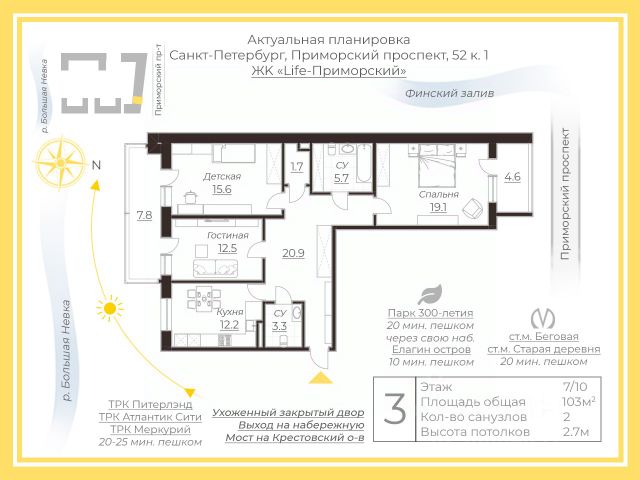 В 15 минутах от м. Беговая предлагаем к покупке комфортную семейную квартиру с качественным ремонтом в итальянском стиле. Она располагается в ЖК "Золотая Гавань", от застройщика "Эталон", кирпич-монолит, высота потолков - 2.80 м. Главное достоинство квартиры - это великолепный вид на залив, Зенит-Арену, закаты и рассветы. Под окнами - уютный сквер и собственный песчаный пляж. Интерьер в классическом стиле - отделочные материалы европейского производства, полы - наборный паркет, шумоизоляционная входная дверь, замки с перекодировкой, межкомнатные двери из массива дерева. Вся мебель Grilli (Италия) и техника европейского производства, которые есть в квартире - остаются новому владельцу. Рядом гипермаркеты "Перекресток" и "Лента", а также инфраструктура на любой вкус, в 10 минутах пешком ТРЦ "ПитерЛенд" с аквапарком и парк им. 300-летия Санкт-Петербурга для семейных прогулок и отдыха. Для детей, на территории ЖК детский сад, рядом общеобразовательные и частные школы и детские сады. Безопасный, закрытый двор без машин, вокруг достаточно мест для парковки + наличие мест в продаже и под аренду в подземном паркинге. 1 собственник, прямая продажа, в собственности с 2012 года, без перепланировок, без обременений! Документы готовы к сделке, квартира к покупателю - звоните, отвечу на вопросы, оперативно организую просмотр, предоставлю необходимую информацию по объекту.