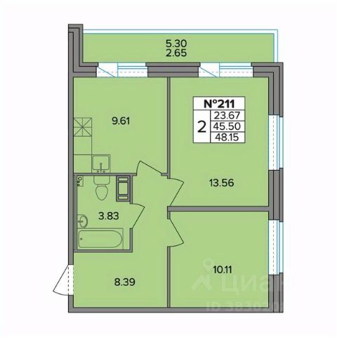 Продаётся 2-комнатная квартира в сданном доме (Ленсоветовский, 19к2 (Корпус 1)), срок сдачи: II-кв. 2025, общей площадью 45.79 кв.м., на 3 этаже. Жилой многоквартирный дом от застройщика "СЗ Смарт".