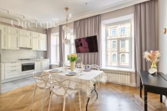 Проект квартиры был выполнен одним из самых известных петербургских архитектурных бюро. Продуманная планировка с подготовкой к присоединению мансардного этажа (более 100 м кв), запланированная система вентиляции и очистки воздуха, классические элементы с современными решениями относят в Париж наших дней.