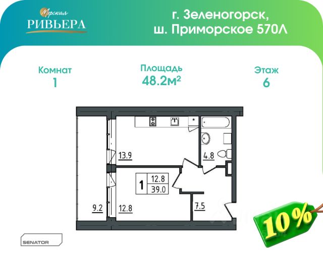 Продаются просторные 2-комнатные апартаменты у самого берега Финского залива площадью 75,5 м2. Идеально для семейного проживания и отдыха. Из каждой комнаты есть выход на глубокую лоджию-аэрарий - там можно легко уместить 2 шезлонга и кофейный столик и наслаждаться видами на лес. Высокие потолки до 3 метров, гардеробная, отделка white-box. Для семей с детьми мы предусмотрели все необходимое! Дом расположен в 50 метрах от Финского залива. Пляж широкий и песчаный, с собственным выходом. Окружают комплекс вековые хвойные деревья, воздух невероятно чистый и полезный, так как в Курортном районе нет предприятий. Такой воздух благоприятно влияет на сон, здоровье, самочувствие, а также на развитие детей. Территория комплекса огромная и зеленая - 1,2 га. Ни одного члена семьи не оставит равнодушным большой открытый бассейн 25м с подогревом, он работает круглый год, можно просто поплавать и отдохнуть, а можно заняться спортом или даже устроить семейные соревнования. А еще мы сделали: - детские игровые площадки (для детей разных возрастов), как на улице, так и в самом комплексе. Есть развивающие интерактивы, настольные игры, PlayStation. Пока дети играют, вы можете провести деловой созвон в лаунж-зоне или просто отдохнуть; - тренажерный зал, теннисный корт, СПА-зону и многое другое. Здесь будет интересно абсолютно всем в любое время года! И, конечно, мы тщательно продумали безопасность, чтобы вы могли спокойно жить и отдыхать. Территория комплекса закрыта от посторонних и охраняется круглосуточно. По всему периметру есть камеры видеонаблюдения, а попасть в помещения можно только по пропускам, так что вы сможете спокойно отпустить своего ребенка погулять одного, не тревожась за его безопасность. Вы сможете жить у моря и при этом довольствоваться всей городской инфраструктурой - рядом есть школы, дет сады, поликлиника, рестораны, супермаркеты, лыжная база и тд. А до центра Санкт-Петербурга всего 40 минут езды. А еще, в стоимость включен 20% НДС, которые вы можете сэкономить при оформлении апартамента на свое юридическое лицо. То есть, сразу на этапе покупки, получить скидку в 20%. "Морская Ривьера" - это идеальный вариант для жизни и отдыха вашей семьи! Записывайтесь на персональную экскурсию пока еще открыты продажи!