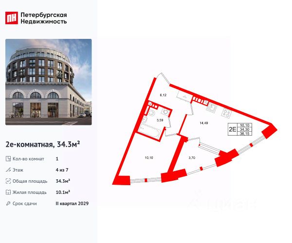 Предлагаем к продаже однокомнатную квартиру в ЖК "Палацио" площадью 38,3 кв. м.