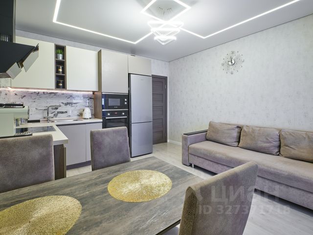 Хорошая планировка квартиры. Просторная прихожая, в нише оборудована вместительная гардеробная с местами хранения- штанги, ящики, полки для одежды и различных вещей, установлены зеркальные раздвижные двери. В комнате зона отдыха, спальное место и рабочая зона. Большая кухня с выходом на балкон. Санузел совмещённый, с полноценной ванной.
