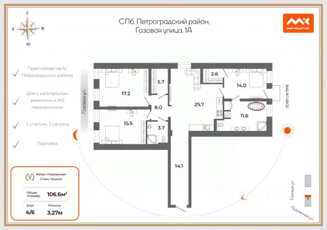 Арт. 129244588 Уважаемый покупатель, Вашему вниманию предлагается квартира в престижной локации Петроградского района! Вас окружают лучшие школы, садики, спортивные учреждения, всего в трех минутах культурно-деловое пространство "Газовая 10" которое объединяет в себе лофты, творческие и образовательные мастер-классы, студии танцев, виар-студия, акробатика и батутный центр, скаладром, падел, футбольное поле, волейбол на песке, фотостудии, кафе, спортивные студии и семейные зоны. Пять минут и Вы уже прогуливаетесь по обустроенной набережной реки Карповки. Дом расположен на тихой улице Газовая, она не проездная - автомобильного движения практически нет. Дом крепкий - с капитальным ремонт и железобетонными перекрытиями, большой закрытый двор с собственными парковочными местами. Парадная с чистой лестницей и лифтом, так же есть кладовка на этаже. Квартира имеет уникальную трёхстороннюю планировку здесь все сделано для комфортной жизни: большая кухня гостиная, три отдельные спальни, а также два санузла, гардеробная и места для хранения. Мастер спальня (гардеробная + большая ванная комната с окном) собственный выход на балкон Качественный и продуманный ремонт будет Вас радовать многие годы! Это действительно очень редкое предложение приглашаем Вас на просмотр! Предлагаем ПРЕМИАЛЬНОЕ обслуживание для требовательных клиентов. Оперативно организуем просмотр, предоставим полную информацию по объекту. 20 лет работы с требовательными клиентами подготовили нас к решению ВАШИХ сложных задач. Будем рады знакомству! Ул. Рубинштейна, д.8. Квартиры с евроремонтом на улице Газовая в Санкт-Петербурге.