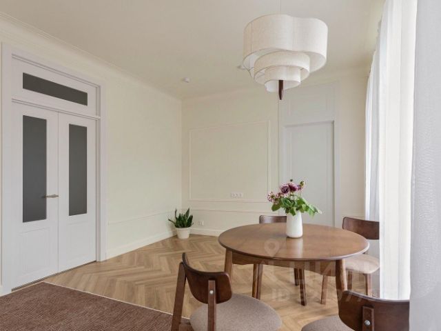 По материалам: деревянные стеклопакеты, ламинат высокой прочности, моющиеся обои. Имеется вся необходимая бытовая техника: посудомоечная машина BOSCH, варочная панель, духовой шкаф, встроенный холодильник, стиральная машина. Кухонный гарнитур производства ИКЕА. В гостиной установлен кондиционер.