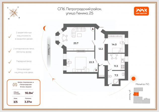 Петроградка — это Петербург, каким его показывают в старых фильмах и гордо вспоминают потом. Спокойная, ухоженная, насыщенная. Жить здесь — выбор тех, кто уже нашёл свой ритм.Звоните, чтобы договориться о показе.